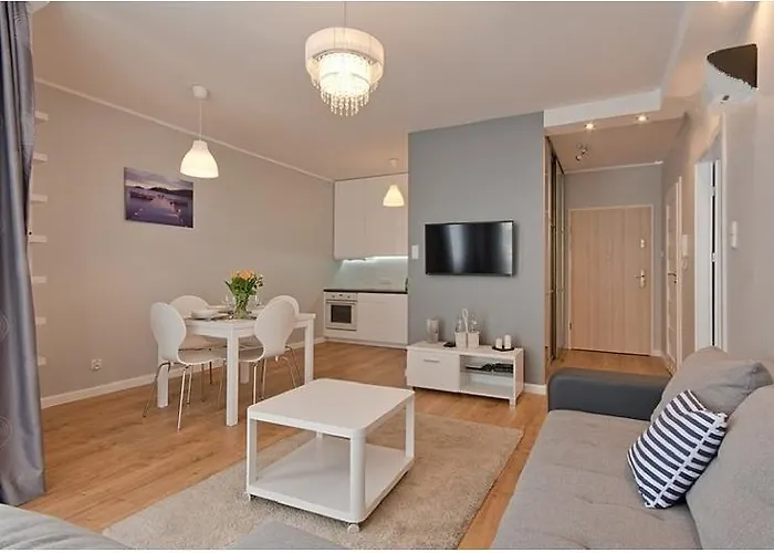 The beachfront Apartament Blisko Morza Gdansk is situated in a residential area of Gdansk, nearly a 25-minute walk from the Jelitkowo Beach. At this apartment, Wi-Fi and complimentary private parking are also provided.